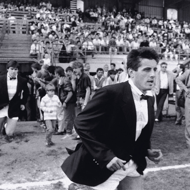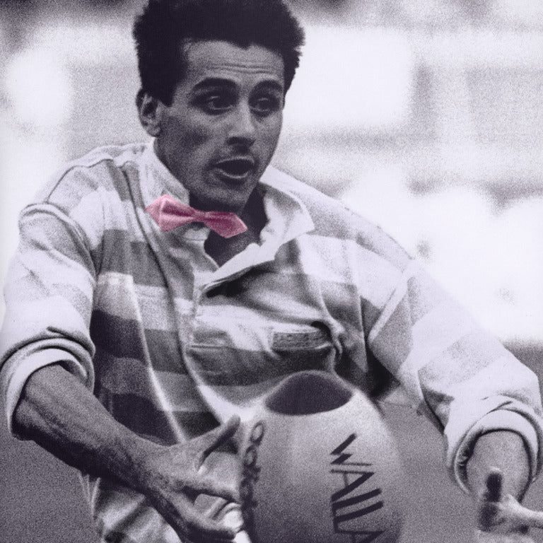 Throughout the season, they played in Basque berets, long pink underwear, or gold-painted boots; they took the field wearing blazers or with their faces painted black, after one of their coloured props was a victim of racial abuse. And to top it off, on May 2nd 1987, when they reached the grand final of the French Championship, live on nationwide TV and in front of 50,000 people at Parc des Princes, all the backs played the game wearing… Pink Bow Ties!